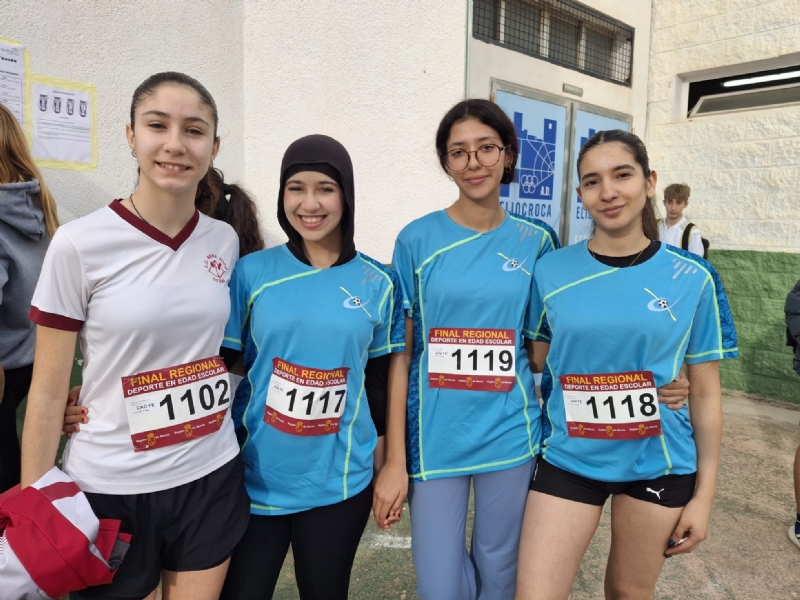 Los representantes totaneros realizaron una gran actuación y consiguieron muy buenos resultados, prueba de ello es la medalla de oro obtenida por las corredoras del equipo juvenil femenino del IES Juan de la Cierva, de un total de 15 equipos en esta categoría, Dahmani Remissa, Sawsan, Jannat Lakhal, Douae y Dehmani Kadddouri y Rim.